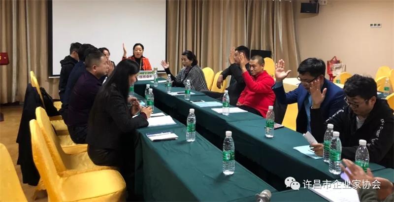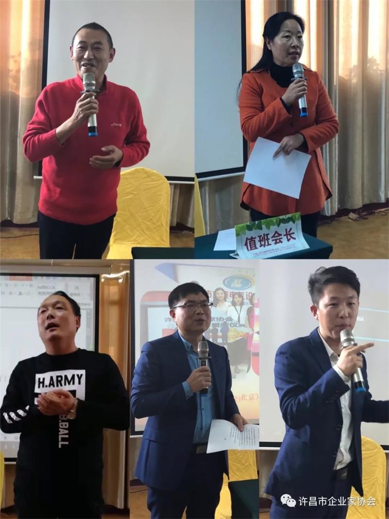 本月值班会长例会分为三个议程。首先,审议并举手表决通过了彭山鸭道、圣典装饰有限公司、许昌昌鸿电气设备有限公司、东方证券许昌营业部 、浦发银行5家企业的入会申请。