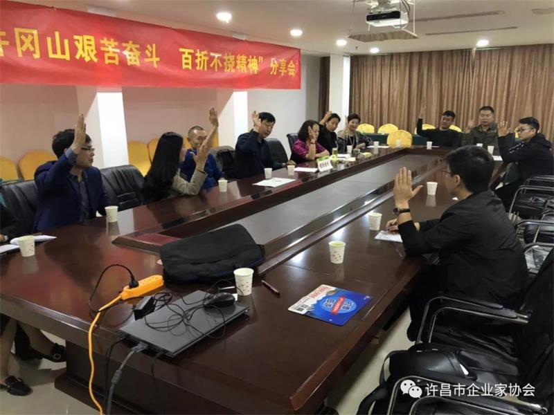 四、对申请入会的3位企业家进行入会审议,他们是许昌胖子店超市有限公司董事长王卫红、中原职业技术学校校长汪建成、嘉禾夕阳红养老院总经理赵航。3位企业家分别进行了个人和企业介绍,阐述了入会的目的和对协会发展的良好祝愿。随后,由推荐人和考察人员客观、公正的将实地考察情况如实的向与会人员进行了汇报,大家各自发表了意见。最后,以举手表决的方式全票通过3位企业家的入会申请。