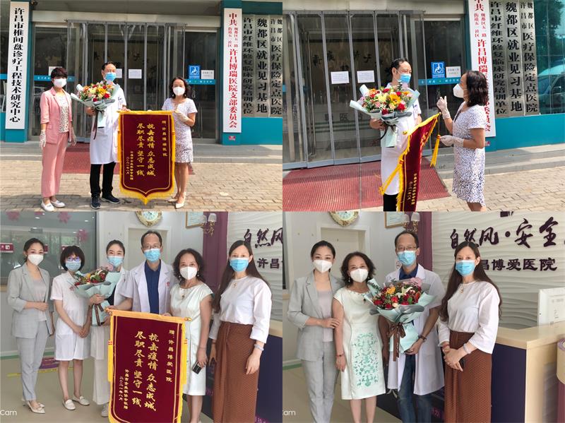 8月11日,协会秘书长在了解到协会会员单位许昌博爱医院、许昌博瑞医院从抗疫一线返回,为感谢两家会员单位为疫情防控核酸检测工作做出的突出贡献,亲自给他们送去致谢锦旗,向他们致敬,两家单位的院长表示:深切的感受到了企业家协会真是一个具有大爱的大家庭,在这个大家庭里更看到了企业家协会为企业的真心付出和深切关怀,相信我们以后一切都会越来越好,更相信我们企业家协会在黄秘书长的带领下也会越办越好!
