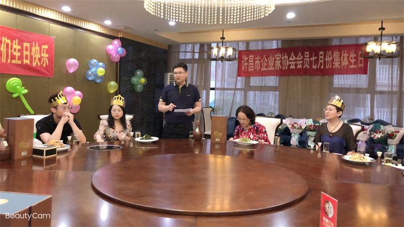 许昌市企业家协会举办七月份生日宴,烛光摇曳、欢声笑语!参加生日宴的会员们笑容满面,享受着协会大家庭带来的温暖。点点烛光,照亮了每位会员的心;浓浓温情,让寿星们久久回味!