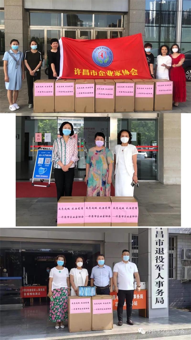 早在疫情到达许昌的前几天,协会会员河南柏毅医用辅料有限公司总经理孔建合,为协会捐赠一批N95口罩,用于疫情防控,紧接着在黄秘书长的带领下,本着“防控疫情 人人有责”的精神,一方面先后前往魏都区政府、许昌市妇联、许昌市退役军人事务局捐赠N95口罩,另一方面十二位值班会长成立12个“送清凉 抗疫情”小分队,冒着酷暑,深入到每一家会员企业,一是送去协会的温情,二是了解企业生产经营中遇到的难题,想办法帮助会员度过难关。在疫情严峻的状态下,协会做到了“生命重于泰山 防控不落一人”,感谢无私奉献捐赠抗疫物资的孔总,感谢十二位值班会长团结一致众志成城抗击疫情的精神!