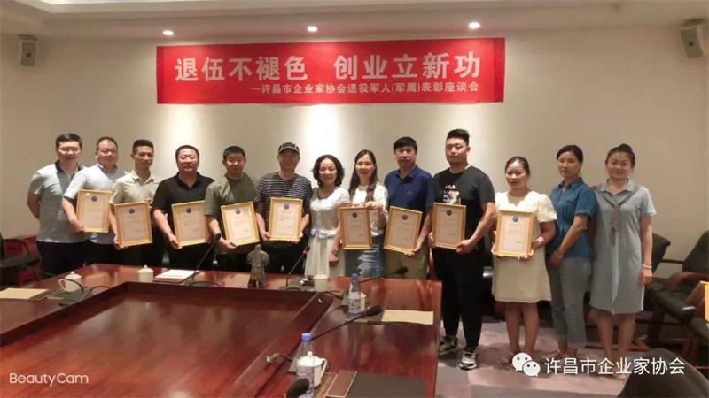 (许昌市企业家协会秘书长黄玉霞共同为协会退役军人(军属)颁发荣誉证书及奖品)
