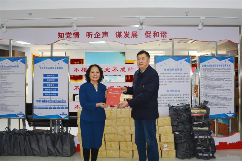 活动中,还观看了企业家协会宣传短片。双方就企业发展、企业文化、党史史志文化以及党建等方面进行了座谈。 郭汶青主任表示,研究室承担的“为党立言、为国存史、为民修志”的重要职责和历史使命,我们此行既放大了工作格局,拓宽了工作视野,也进一步促进我们了解企业真实动态,增强感性认识,进而整合企业资源,将2022年企业家协会及会员企业的大事、要事、新事、特事进行收集整理,为我们编写好2023年《许昌年鉴》而且是最能凸显我们许昌品牌和特色的“民营企业”栏目再添新彩!下一步,我们也将充分发挥党史资政育人作用,深入企业开展党史宣讲,讲好党的故事。黄玉霞秘书长表示,一定利用好这些党史史志书籍,组织企业职工阅读学习,让党员职工更好了解许昌红色历史,传承红色基因和传统文化,激发员工投入生产、建设家乡的干劲和热情,促进企业高质量发展。