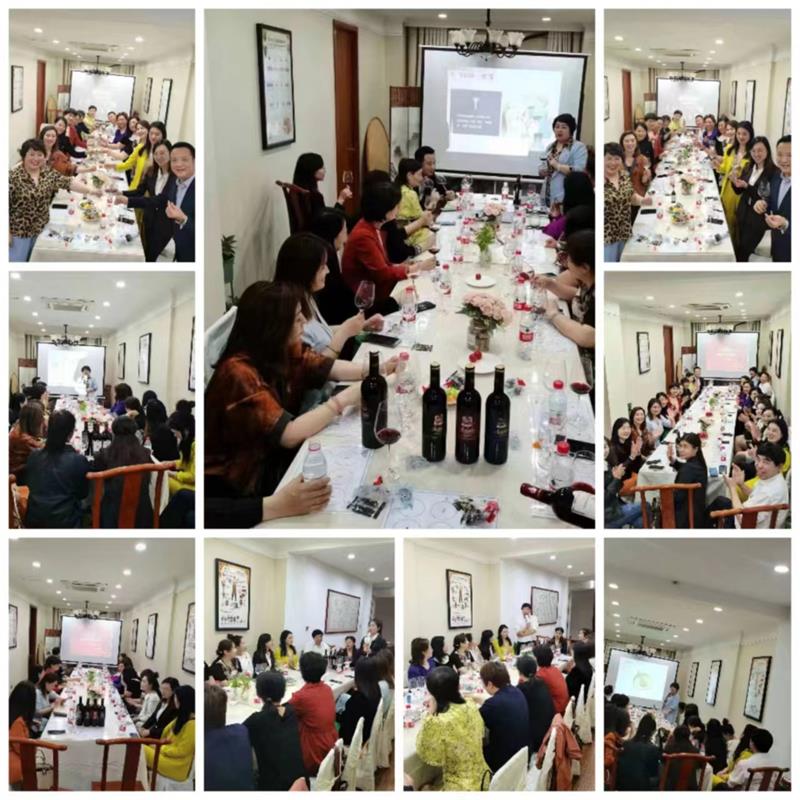 4月19日下午,许昌市企业家协会妇联在会员单位中粮名庄荟举办红酒品鉴暨商务礼仪培训会,协会妇联主席曲钊霞、协会妇联副主席李会玲、协会妇联执委郑晓君、韩雨、郭歌、赵钊等18人参加活动,活动由协会名誉会员、许昌电视台新闻播音员钱汇丰主持。