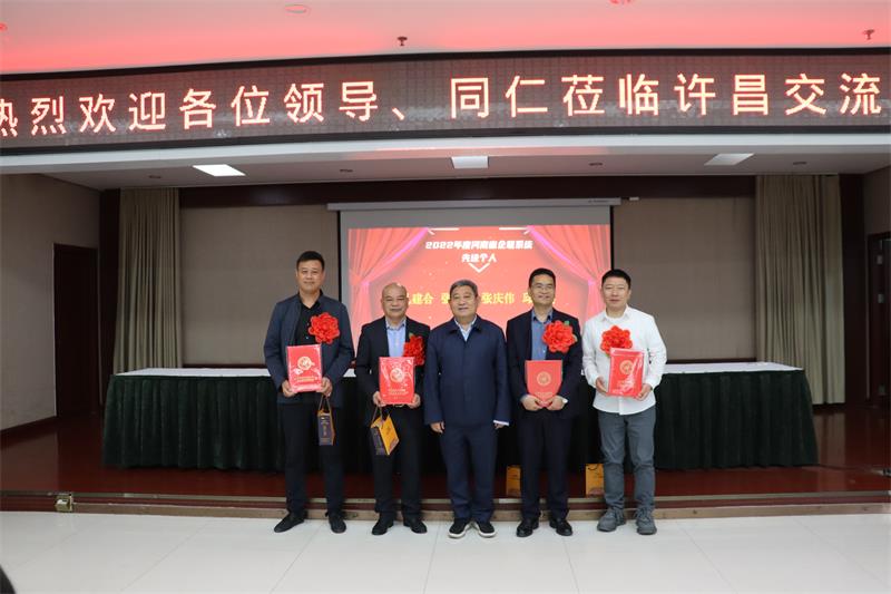 会上还特邀省企联副会长田富军为许昌企协4位获得2022年度河南省企联系统的先进个人进行颁奖,他们分别是:许昌市企协副会长、河南栢毅医用辅料有限公司董事长孔建合、许昌市企协执行会长、河南湖雪食品有限公司总经理张建涛、许昌市企业家协会公益导师张伟、河南金诺混凝土有限公司总经理邱文会。