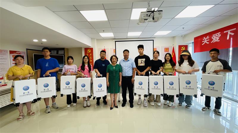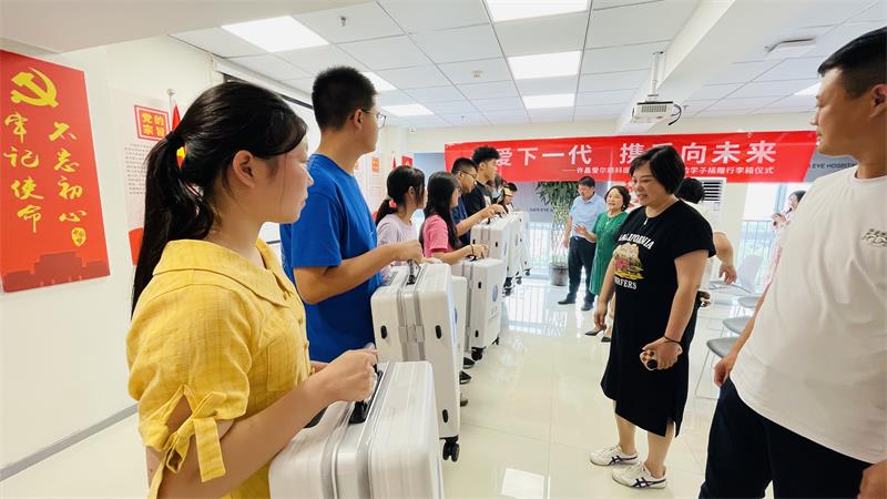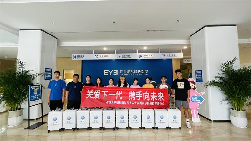 许昌爱尔眼科医院副院长魏绍庆代表医院向即将迈入大学的同学们表示衷心的祝贺,并寄语同学们珍惜时光,好好学习天天向上,早日成为祖国的有用之才。魏绍庆和企协参会领导向全体学生赠送了拉杆箱,姚璐璐同学代表12名学子发表感言,表达了他们的谢意。