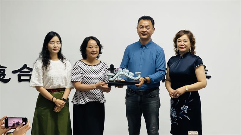 (协会秘书长黄玉霞代表协会向许昌外商投资企业协会赠送如意钧瓷)
