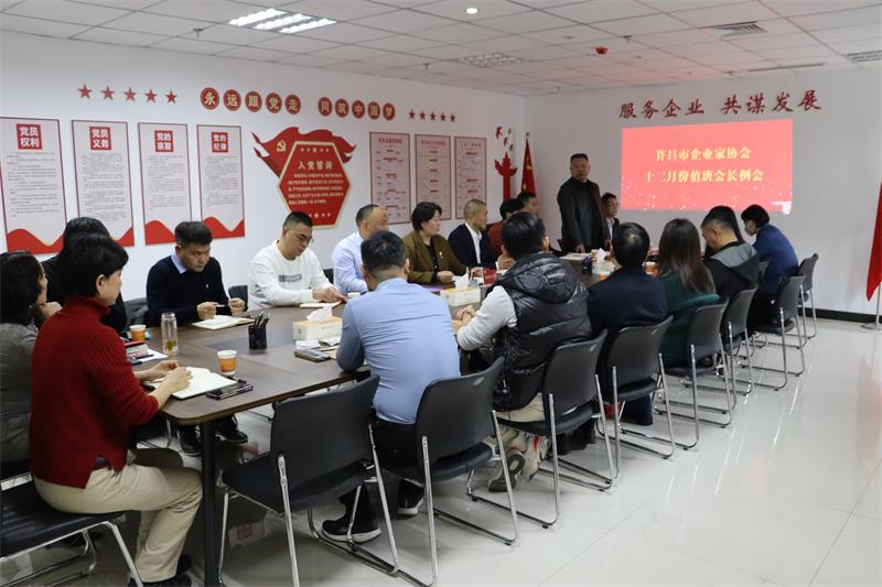 12月5日下午,许昌市企业家协会十二月份轮值会长工作交接会在协会会议室召开,会议由十二月份值班会长、许昌汉魏餐饮管理有限公司总经理范文彦主持。