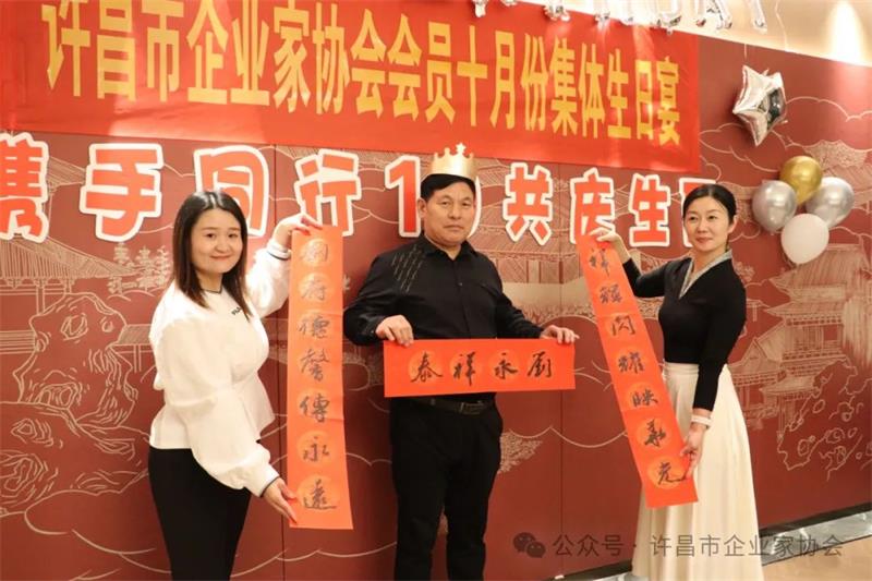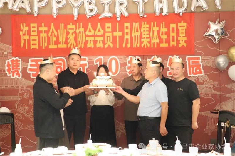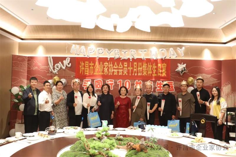 为了增进协会会员的认同和归属感,让会员真正融入到协会的大家庭中。10月12日晚,协会在许昌市颂锦大酒店二楼为十月会员寿星们举办生日会。秘书长黄玉霞、协会妇联主席曲钊霞、协会常务副秘书长范文彦、十月份值班会长、许昌有朋能源科技有限公司总经理娄玉阵等20位协会会员相聚共度生日宴。