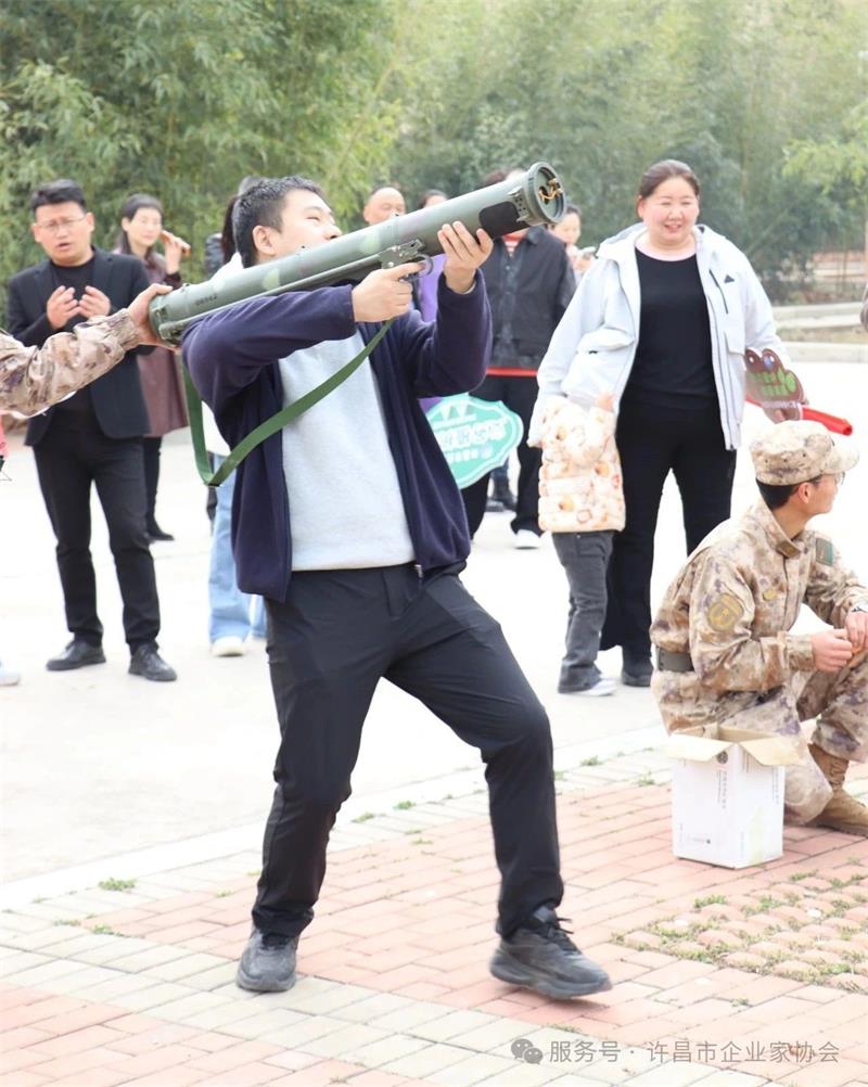 活动伊始,企业家们来到许昌玖零教育实践基地,瞬间被丰富多彩的实践基地所吸引,许昌玖零教育实践基地总经理张磊简单介绍基地情况后,大家随后跟随教练员的脚步,参观了基地的实践活动场地、食宿环境等,感受了浓厚的爱国主题企业文化。部分企业家还亲身体验了发射火箭炮的紧张与刺激,对基地的实践活动赞不绝口。