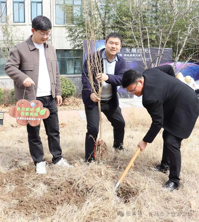 春回大地,万物复苏。 2025年3月12日,正值第47个植树节,许昌市企业家协会联合副秘书长单位、许昌玖零教育实践基地,组织开展了“值此青绿 共赴美好”植树活动,以实际行动践行绿色发展理念,为城市增添新绿。活动吸引近50位企业家积极参与,共同度过了一个充满意义的植树节。