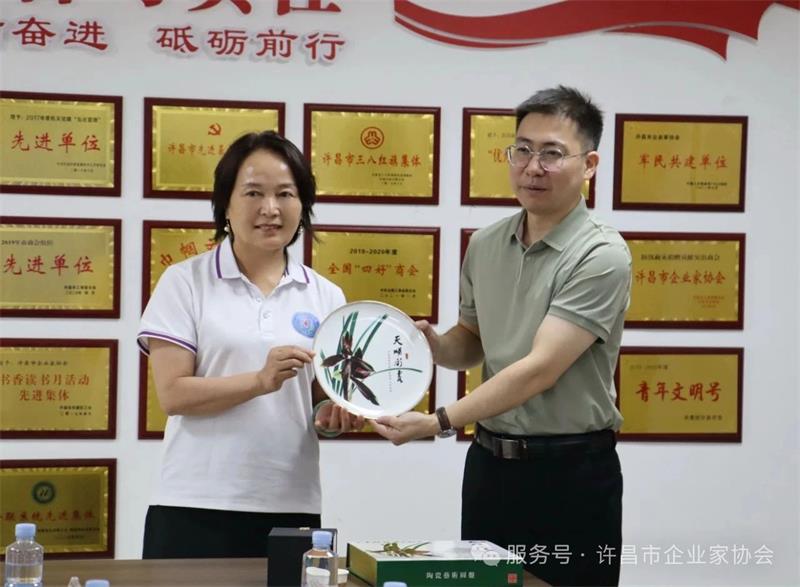 交流结束后,双方互赠纪念品。贵阳市人民政府驻武汉办事处向协会赠送了中共贵阳市委、贵阳市人民政府定制的精美的陶瓷艺术圆盘,协会回赠了具有许昌文化特色的钧瓷主人杯。此次交流不仅加深了彼此了解,更为今后深化合作奠定了坚实基础。双方一致表示,将以此为契机,建立长效沟通机制,推动资源共享,实现互利共赢。