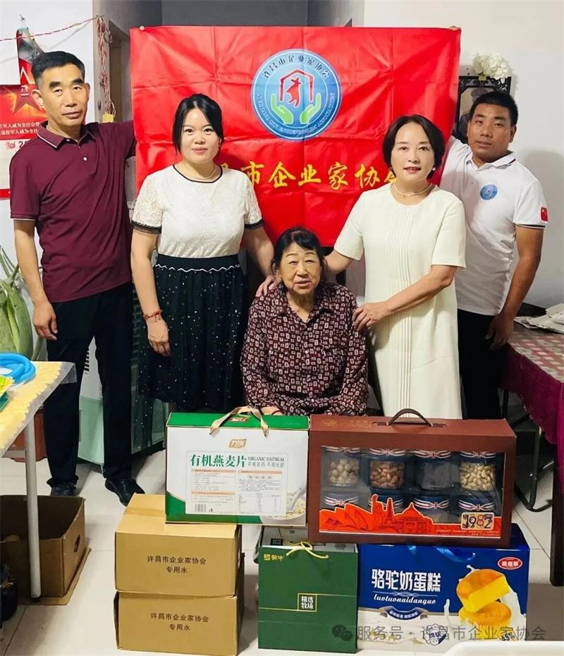 7月29日上午,在"八一"建军节来临之际,许昌市企业家协会组织会员企业代表走访慰问烈士遗孀,向英雄家属致以崇高敬意和节日问候。慰问组为烈士遗孀送去牛奶、蛋糕、坚果等生活用品,并详细询问老人的身体状况和生活需求。