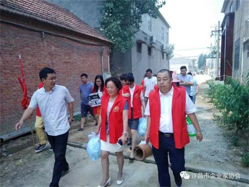 2017年6月16日上午九点,企业家协会秘书长黄玉霞与六月份值班会长星芮酒店管理有限公司总经理董国良,带领禹州市温博钧瓷文化发展有限公司总经理李会玲、许昌恒汇信息咨询公司总经理冯会娜、河南拓尔康医药科技有限公司总经理孟银鹤、大管家财务有限公司经理刘倩、许昌市企业家协会助理董炯、刘淑贞及樊登读书会许昌分会、许昌永诚网络、许昌博爱医院、郑州天宇消防工程有限公司许昌分工司的员工代表,共12人前往长葛市舒庄村进行扶贫帮困献爱心活动。