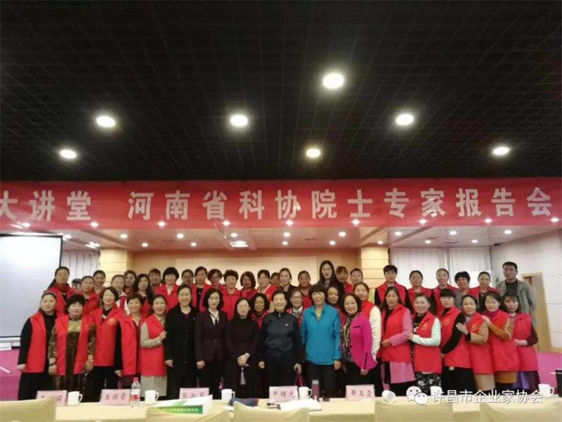 4月23日下午,由许昌市妇联、许昌市科协联合组织的莲城女性大讲堂,河南省科协院士专家报告会在市政府3号楼会议室举办。邀请中科院心理学博士高伟为大家做心理减压与心理疏导的讲座。我们企业家协会60多位会员代表分享了高博士的精彩演讲,并与高博士、省科协领导、市妇联、市科协领导合影留念。
