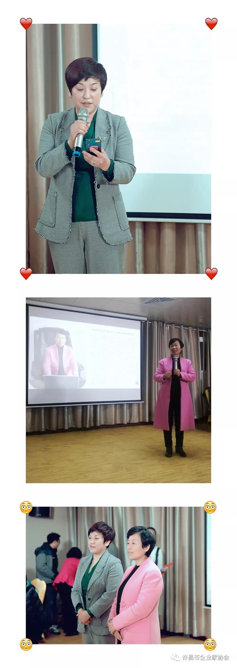 许昌市企业家协会秘书长黄玉霞秘书长用朴实无华的语言,把企业家协会四年来的工作进行了简单的回顾,PPT上闪过的是一幅幅真实的画面,是一只充满活力传递正能量的团队。