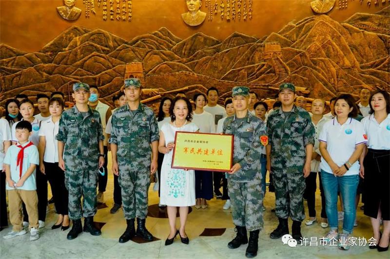 杨根思连部队政委翟继群向许昌市企业家协会授“军民共建单位”匾