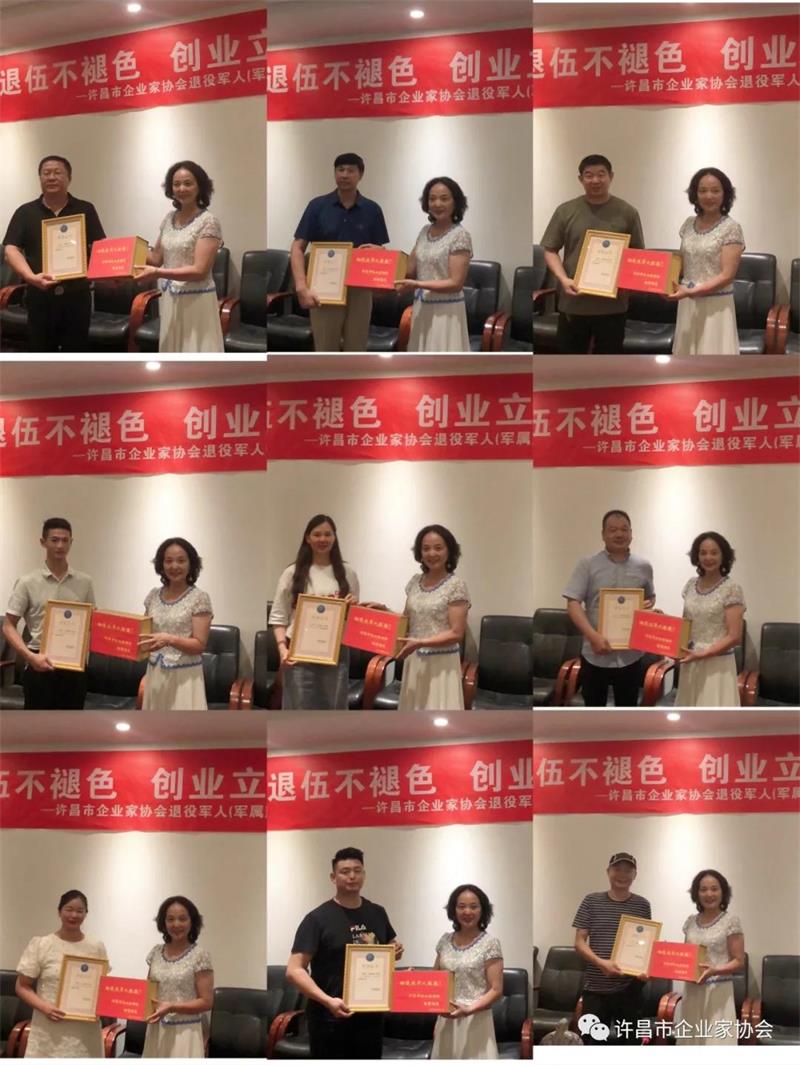 (许昌市企业家协会秘书长黄玉霞共同为协会退役军人(军属)颁发荣誉证书及奖品)