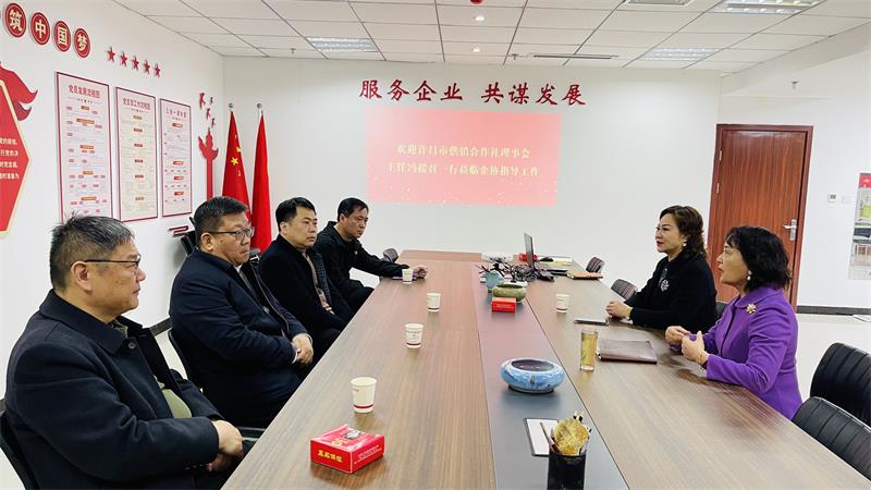 3月24日上午,许昌市供销合作社主任冯援召、副主任杨建民一行四人来访交流,秘书长黄玉霞、妇联主席曲钊霞热情接待冯主任一行,并就新时期供销社职能、发展以及与相关企业互动合作事宜进行友好交流。双方均表示,要多互动,以创造合作机会。
