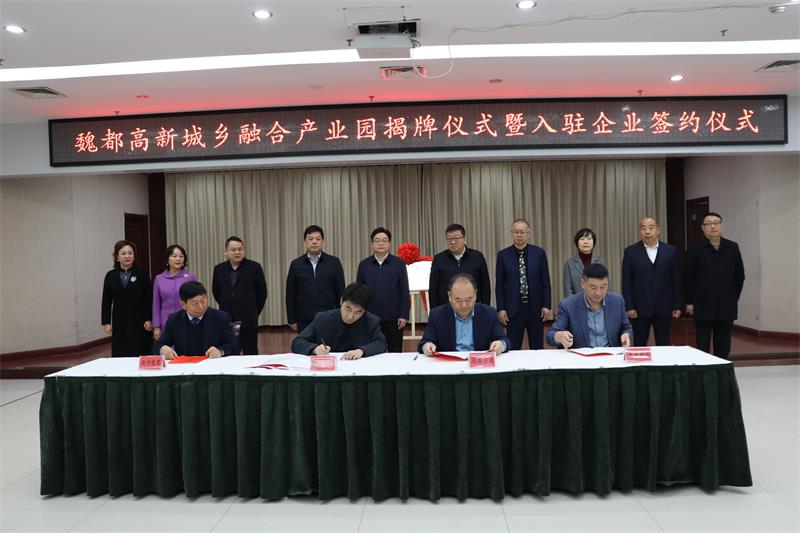 3月24日上午,在魏都区政府一楼会议室,许昌市人民政府副市长赵鹏、魏都区区长何长成为魏都区高新城乡融合产业园揭牌,企业家协会“牵线搭桥”的许昌晟泰实业有限公司成功入驻该产业园。