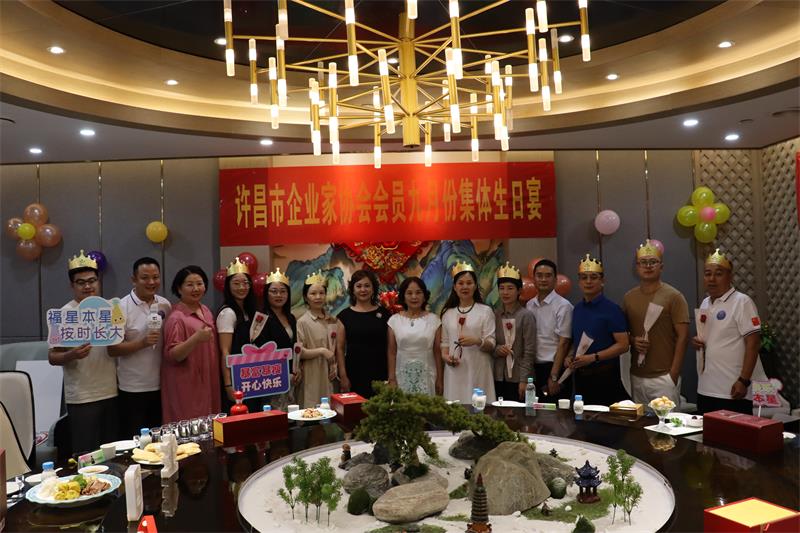 9月1日晚上,许昌市企业家协会9月份集体生日宴,在星芮连锁酒店温情举办。秘书长黄玉霞、妇联主席曲钊霞、副秘书长范文彦、值班会长雷运昌等共20位协会会员相聚共度生日宴。