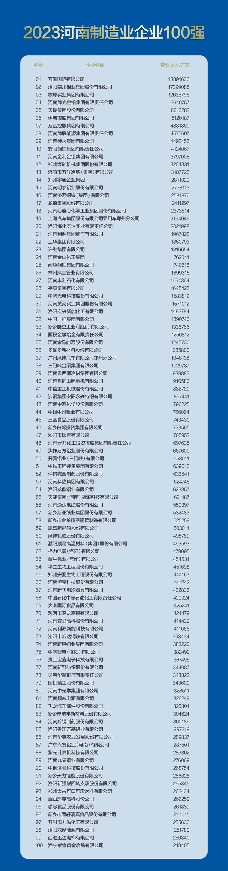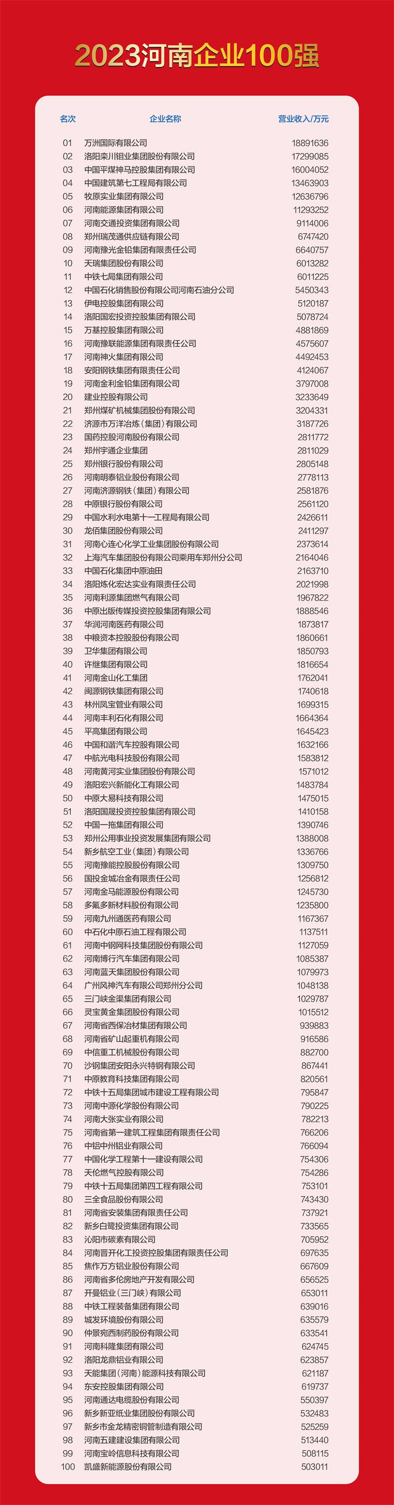 据悉,许昌市荣获“2023河南企业100强”的企业有