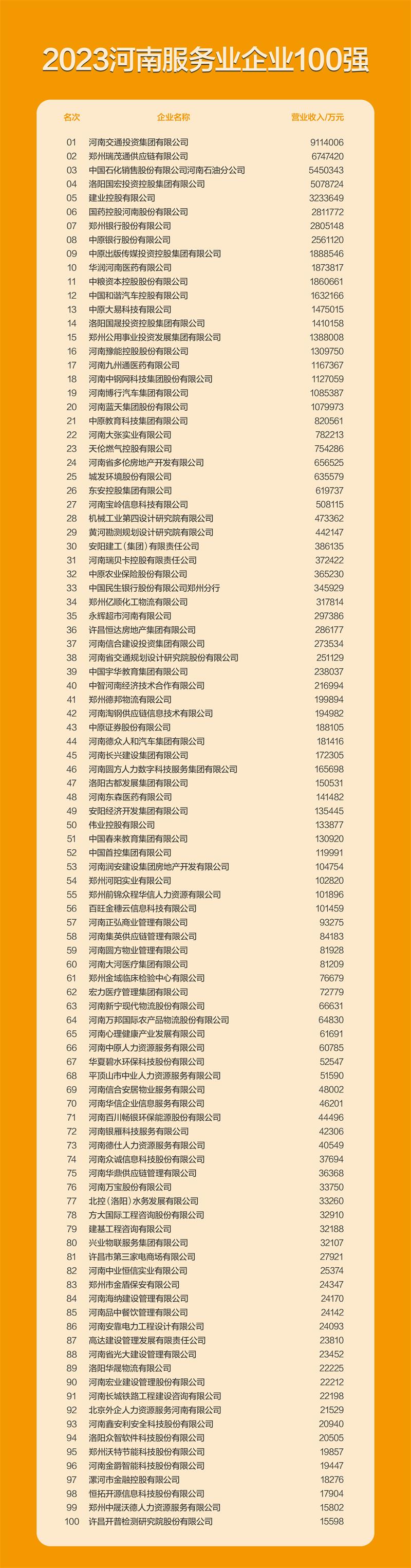 许继集团有限公司、河南黄河实业集团股份有限公司、西继迅达电梯有限公司;许昌市荣获“2023河南服务业企业100强”的企业有