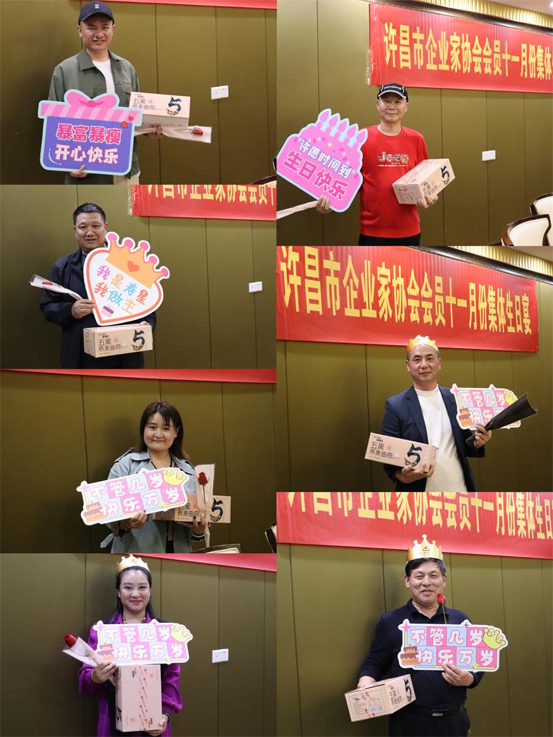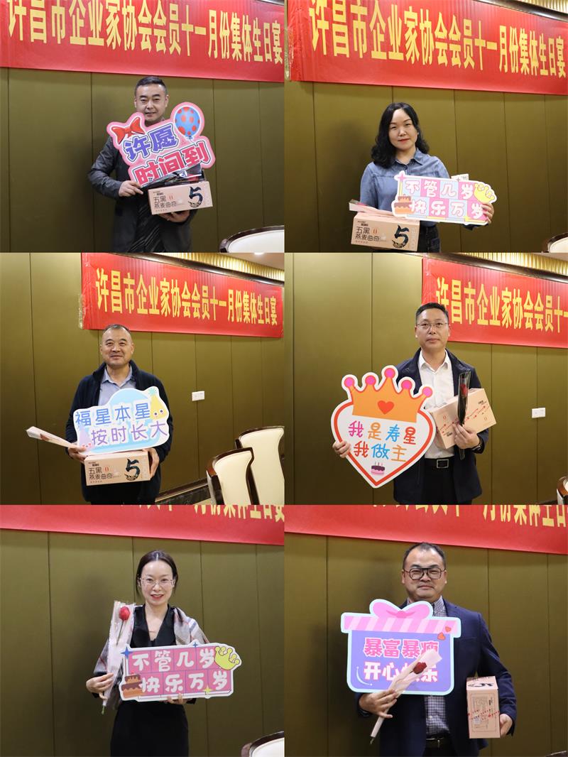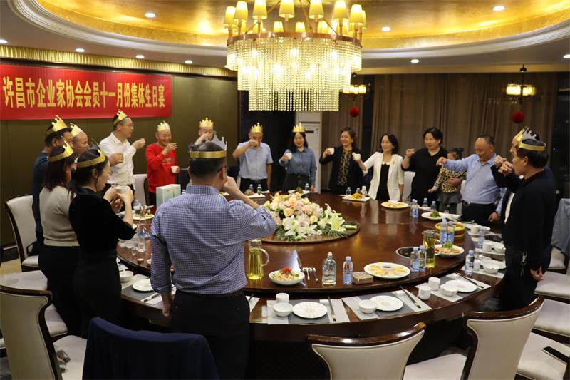 11月3日晚上,许昌市企业家协会11月份集体生日宴,在世春阁酒店温情举办。秘书长黄玉霞、妇联主席曲钊霞、副秘书长范文彦、值班会长汪建成等共20位协会会员相聚共度生日宴。