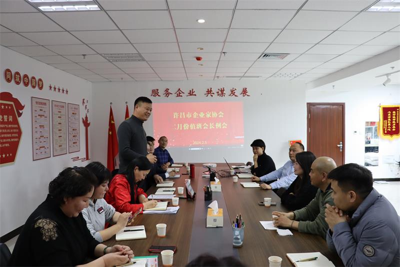 2月5日晚上,许昌市企业家协会二月份轮值会长工作交接会在许昌市企业家协会会议室召开,会议由二月份值班会长、河南湖雪食品有限公司总经理张建涛主持。