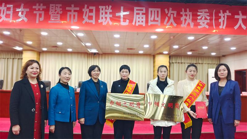 春暖花开,百花齐放。3月7日下午,在召开的许昌市纪念“三八”国际妇女节暨市妇联七届四次执委(扩大)会议上,协会副会长单位、许昌德信财务代理集团有限公司、许昌鸿宝大酒店有限责任公司授予“许昌市巾帼文明岗”荣誉称号、协会办公室主任刘淑贞授予“许昌市三八红旗手”荣誉称号。