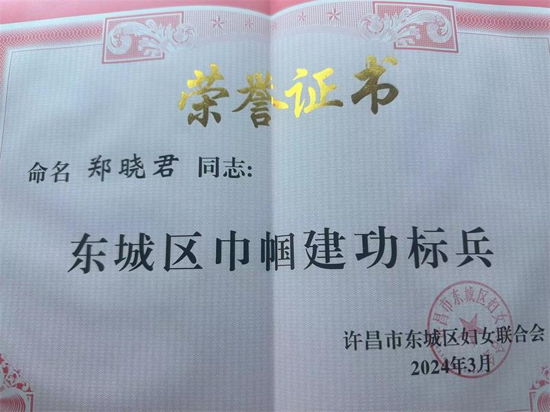 协会副会长单位、许昌阔达装饰有限公司荣获魏都区巾帼建功集体。