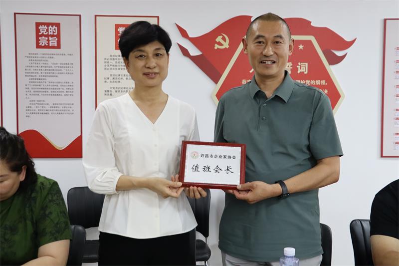 6月5日下午,许昌市企业家协会六月份轮值会长工作交接会在许昌市企业家协会会议室召开,会议由六月份值班会长、许昌康洁洗涤有限公司总经理薛世兴主持。