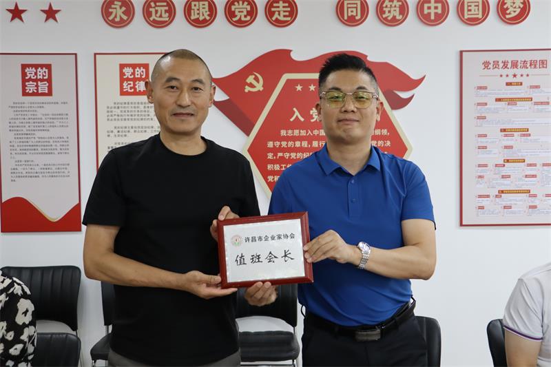 7月5日下午,许昌市企业家协会七月份轮值会长工作交接会在许昌市企业家协会会议室召开,会议由七月份值班会长、许昌有朋能源科技有限公司总经理娄玉阵主持。