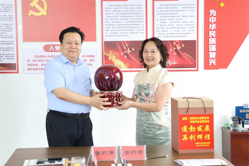 秘书长黄玉霞、七月份轮值会长娄玉阵、八月份轮值会长任天培、一月份轮值会长钱俊霞、七月份轮值副会长张泰民等一行7人先后参观了安阳市企业家协会党群服务中心和企协文化长廊。在随后的交流环节中,许昌市企业家协会与安阳市企联举行友好合作签约仪式。双方就如何更好地做好协会工作,服务党政大局、助力企业发展等进行了深度交流。大家一致认为,在当前的大环境下,不仅企业间要做到抱团取暖,协会之间也要加强联系,相互学习借鉴、共享资源、共谋发展。