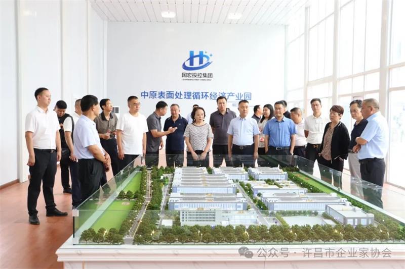 许昌市企业家协会一行先后参观了三五集团、中钢洛耐、中原表面处理循环经济产业园、先进制造业开发区产业园。