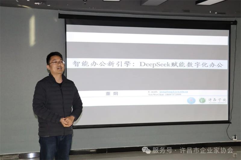 2月24日下午,许昌市企业家协会邀请许昌学院副教授、董炯博士,为协会会员带来了一场关于DeepSeek的精彩讲座。本次活动旨在帮助企业了解人工智能前沿技术,把握行业发展趋势,提升企业数字化转型能力。
