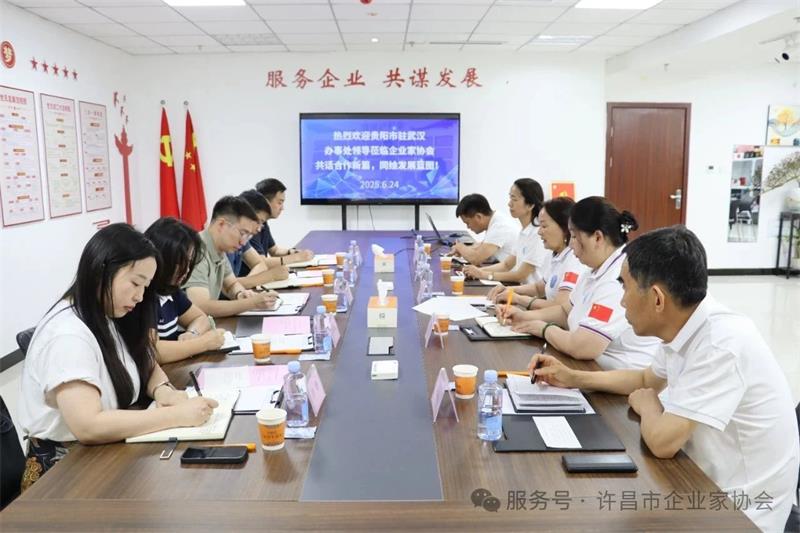 2025年6月24日上午,贵阳市人民政府驻武汉办事处副主任姚固涛一行5人到访我会进行工作交流。协会秘书长黄玉霞、常务副秘书长范文彦、本月份值班会长李伟平、四月份值班会长韦永才、七月份值班会长张泰民共同接待并举行座谈。