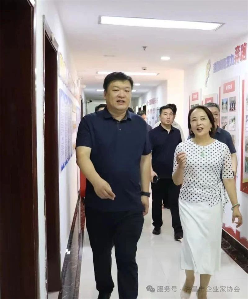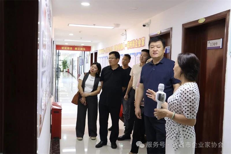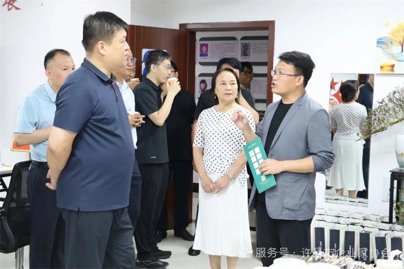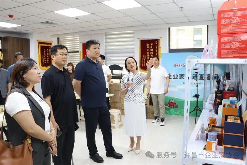 在黄玉霞的陪同下,考察团首先参观了协会党建文化阵地,详细了解协会"党建促会建"的特色工作模式。随后,考察团重点参观了会员企业产品展示区,黄玉霞就会员企业产品种类、绿色健康及市场销售等方面作了详细介绍。