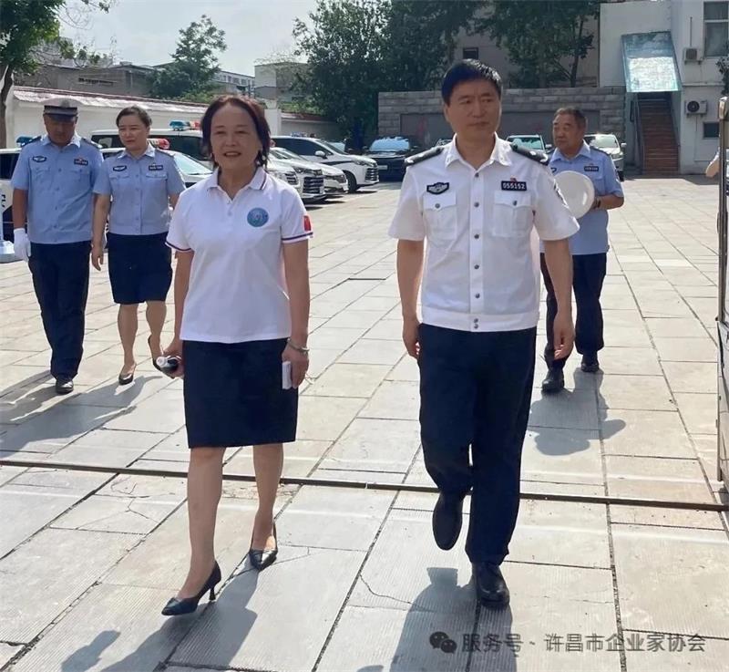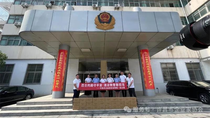 6月30日上午,许昌市企业家协会秘书长黄玉霞带领部分会员企业代表,先后来到许昌市公安局交通管理支队和魏都区城市管理综合执法大队文博中队,开展"夏日送清凉"慰问活动,为坚守岗位的一线交警和城管队员送去定制矿泉水,在高温酷暑中传递社会关怀。