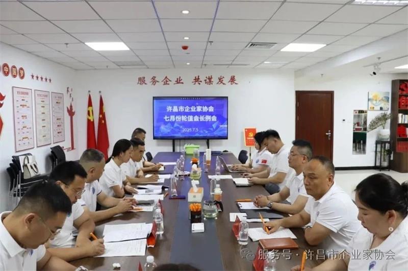7月5日下午,许昌市企业家协会在协会会议室召开七月份轮值会长例会。会议由许昌惠泰装饰工程有限公司总经理张泰民主持。