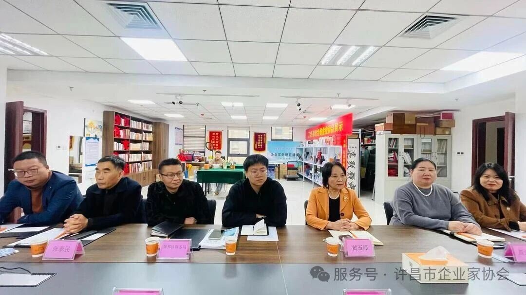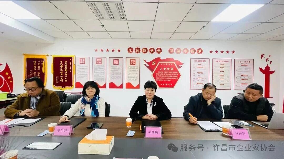 许昌市企业家协会常务秘书长、许昌中原香驴肉总经理范文彦,七月轮值会长、许昌惠泰建材有限公司总经理张泰民,秘书处会员部部长、许昌慈雲药业有限公司总经理郑琳,以及红领西服许昌总经理安帝兆等企业代表参与座谈交流。