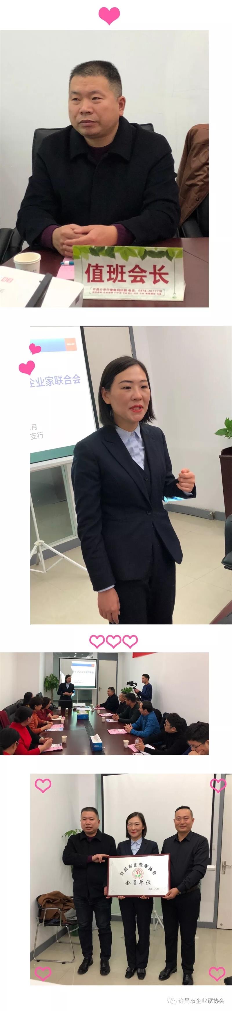 2018年12月10日下午两点本月值班会长例会如期在浦发银行莲城大道支行二楼会议室召开,本次会议由值班会长、许昌鼎和商贸有限公司总经理杨广伟主持。在会议正式开始前由会员企业浦发银行许昌分行行长徐丽娟向大家介绍浦发银行新的理财政策及贷款优惠政策,解决现在企业融资难的问题。